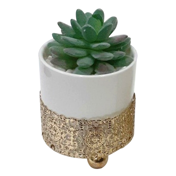 Artificial Aloe Vera Succulent with Ceramic Pot & Golden Stand