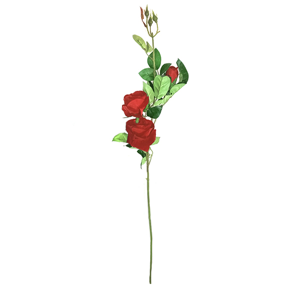 Artificial Velvet Rose Single Stem Flower with 3 Heads